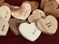 Handgearbeitete Herzerln aus verschiedenen heimischen Hölzern; fein geschliffen und geölt; Zirbe und Birke naturbelassen; Jedes Herz ist mit einer Lasergravur versehen; ca. 6 x 5,5 x 1 cm.