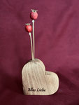 Handgearbeitetes Herz aus Nussholz; fein geschliffen und geölt; Lasergravur "Alles Liebe"; mit Bohrung für Trockenblume; In der Lieferung sind zwei handbemalte Samenkapseln von unseren Mohnblumen aus dem Garten enthalten; 10 x 11 x 2,5 cm.